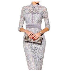 • midi length sheer lace coquette high neck mock neck preppy office cocktail date night regency edwardian victorian sheer romantic ethereal dainty soft girl wedding guest party semi formal holiday event pin up girl rockabilly jackie o