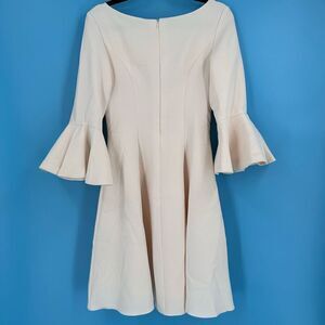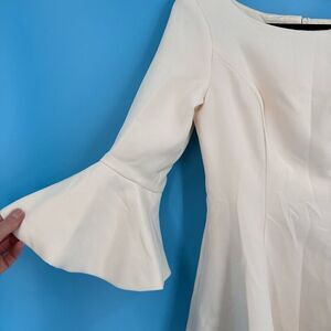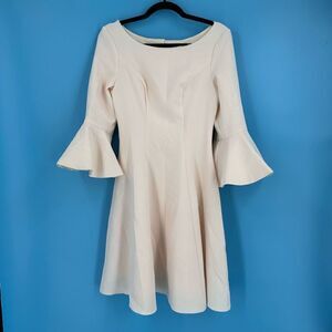 Metisu Women's Bell Sleeve Boat Neck Lined Satin Sheath Dress Cream Size Medium