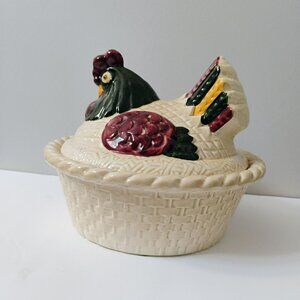 Vintage Metlox Poppytrail Pottery Rooster Covered Casserole is a charming addition to any collection. Perfect for serving or display, this 9" dish showcases classic California craftsmanship.