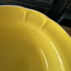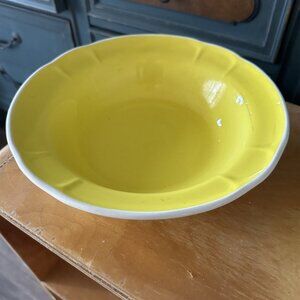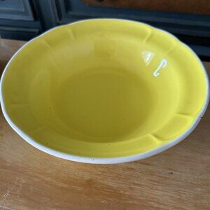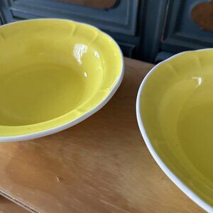 Metlox Poppytrail Vernonware Serving Bowl Yellow Scalloped...set of 2...approx 9" in diameter...white trim ..not sure what pattern this goes with