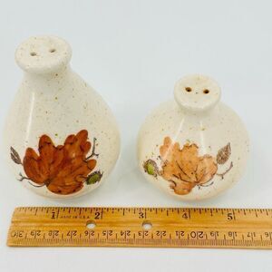 Metlox Poppytrail Woodland Gold Salt & Pepper Shaker Set 1960s Vintage Fall Leaf