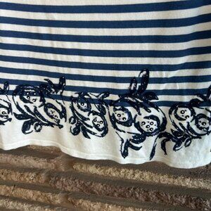 Metric Blue Striped Scroll Floral Sweater Size Large