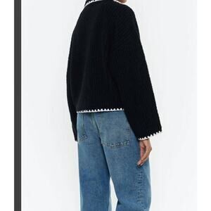 Metric Knits Black White Chunky Knit Cardigan Sweater NWT