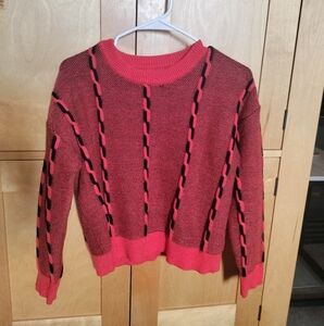 This is a hard sweater to part with. It is SO cool. It is in beautiful condition and worn once or twice. No major signs of wear or pilling. You are sure to be the talk of the party in this sweater.