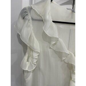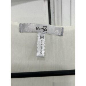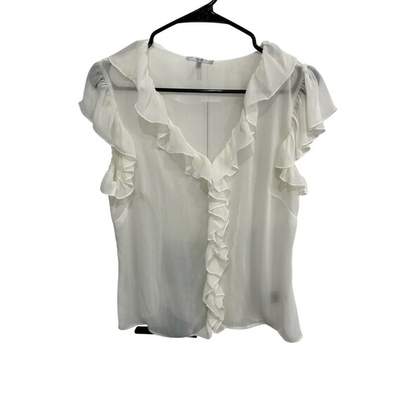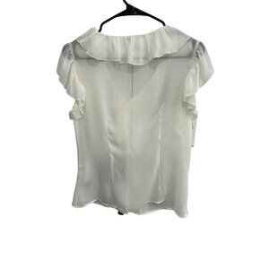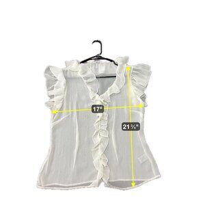 Metro 7 Sheer Cap Sleeve V-Neck Ruffle Blouse Eggshell Sz Medium Career Office