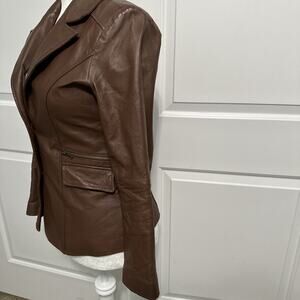 Metro Style Woman’s Brown Leather Jacket Size Small Trendy Chic