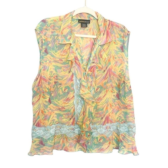 Metro Style Y2K Lace Ruffle Sleeveless Colorful Blouse 20