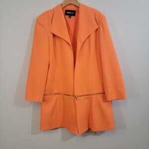 MetroStyle Bright Orange Blazer Jacket Sz 16 Lined Zip Around Adjustable