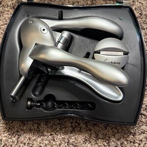 Metrokane Rabbit Lever Corkscrew Set. Rabbit Corkscrew: A lever-style wine bottle opener designed for efficiency. Foil Cutter: A circular tool used to remove the foil cap from wine bottles. Extra Spiral: A replacement worm for the corkscrew.