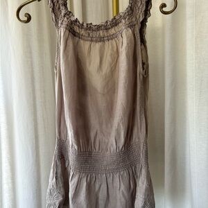 Chic light beige top with delicate ruffle details. Ideal for stylish outings.
