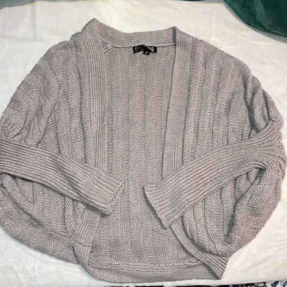 Soft ribbed knit cardigan by Metropark. Open-front design with long sleeves. Cozy and easy to layer. Neutral light gray tone works with any outfit.