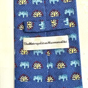 Metropolitan Museum Of Art Mens Silk Tie Blue Elephants Yellow Motif Necktie