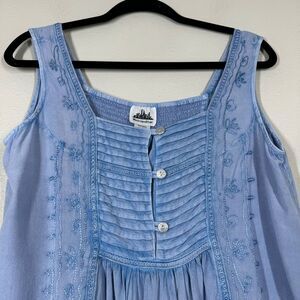 Metropolitan Tank Top Sleeveless Blue Blouse, Embroidered, Rayon, Fairy, Smocked Back, Button Front Details, Embroidery Throughout, Some Loose Stitching On The Chest But No Hole, Otherwise In Great Preowned Condition. Women’s Size Medium