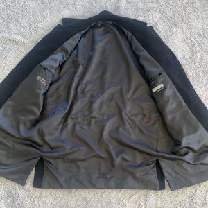 Preowned condition as shown. No stains, rips, holes or odors. Smoke and pet free. Size 44R. Photos were taken in indirect natural light, so the black may not appear as vibrant in photos as it is in person. There is no fading.