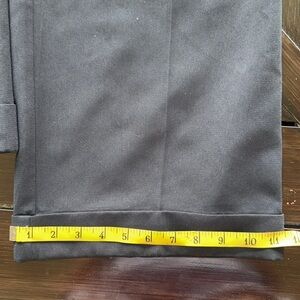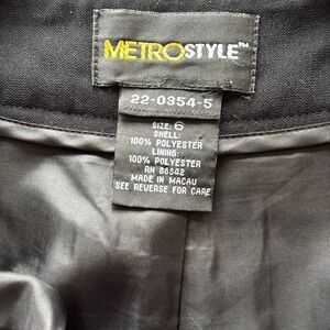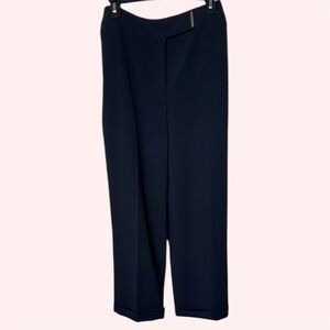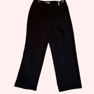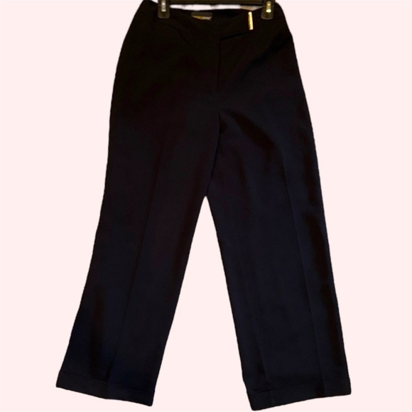 Chic black trousers by Metrostyle. Very versatile. Wide cuffed legs. Silver Accent on Waist. Button fly and snap closure. Fully lined. Approximate measurements in photos. Excellent condition.