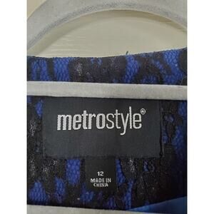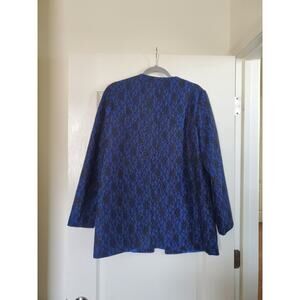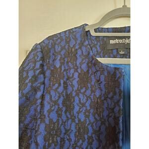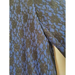Metrostyle Full Lace Blue Black Retro Hip-Length Open Blazer Jacket, Size 12