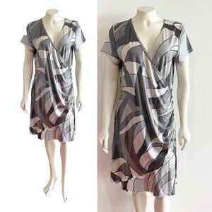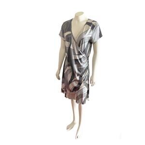Metrostyle Metallic Pattern Silver Gray Wrap Style Dress Vintage 90s Y2K.