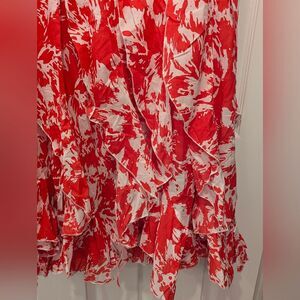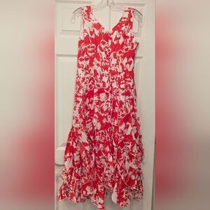 Metrostyle Red White Floral Midi Dress 8P Fit Flare Ruffle Hem Sleeveless Summer