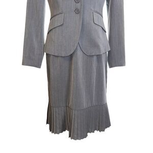 Metrostyle Stretch Gray Pinstriped 2 Piece Suit Skirt Set Size 6 Career Office