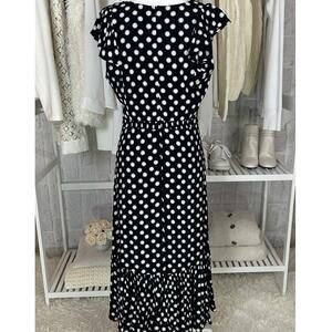 Metrostyle Women's Size 8 Black Polka Dot Ruffle Hem Midi Dress #0417