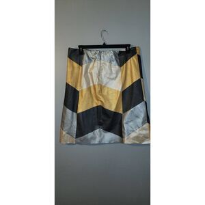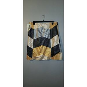 Multi color leather patchwork skirt fully lined hidden side zipper