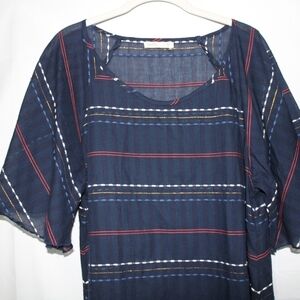 Mettle Navy Embroidered Striped Sheer Tunic Beach Cover Up Medium.