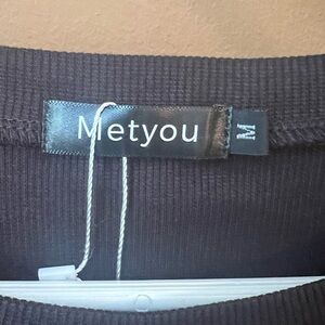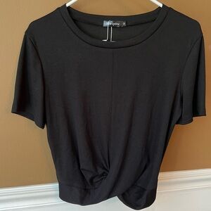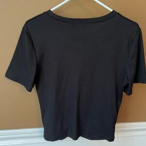 Metyou Women’s Black Asymmetrical Crop T-Shirt with Short Sleeves Size M