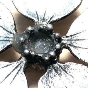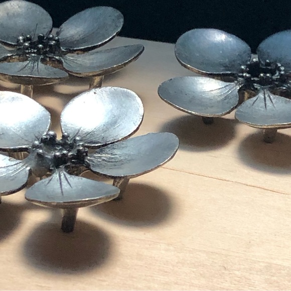 These three perky pewter blossom candle holders are vintages pieces made by the family pewter business- Metzke. From 1963 to 1997, this Florida family business made wonderful pewter pieces