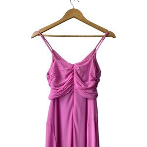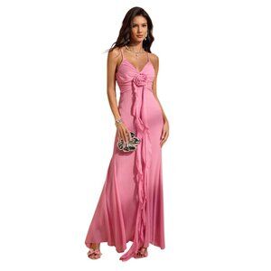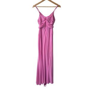 • long maxi rosette adjustable straps draped hot pink bright flowy feminine romantic semi formal wedding guest cocktail party barbiecore fairy princess flattering