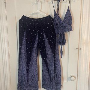 Mexicali Blues is a Maine-based import clothing company :) Two-piece pants and crop top set, top can be adjusted by ties. Pants are a Small/Medium sizing.
