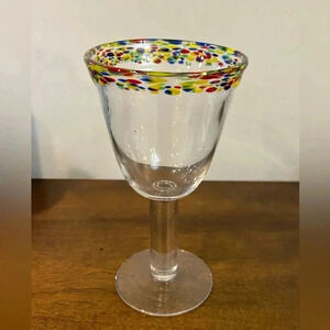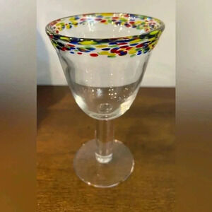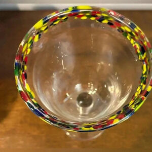 Mexican? 12 Oz Confetti Rim Goblet or Wine Glass Hand Blown Block Eclipse