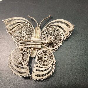 Mexican 925 Silver Fine Filigree Butterfly Vintage Brooch Pin