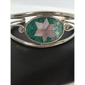 Mexican Alpaca Silver Mother of Pearl/Abalone Star David Cuff Bracelet