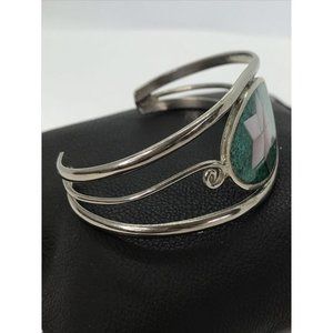 Vintage Mexican Alpaca Silver Mother of Pearl/Abalone Star Cuff Bracelet
