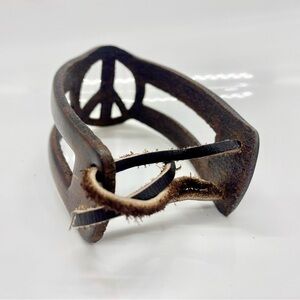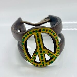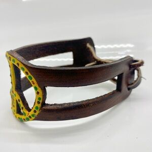Mexican Artisan Handmade Hand Painted Brown Peace Sign Leather Cuff Braclet