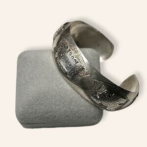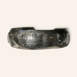 Mexican silver cuff bracelets with ancient hieroglyphs