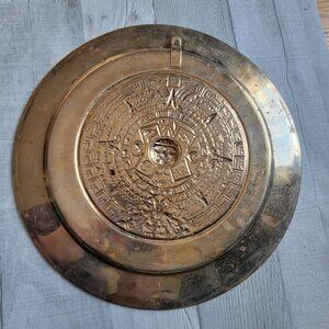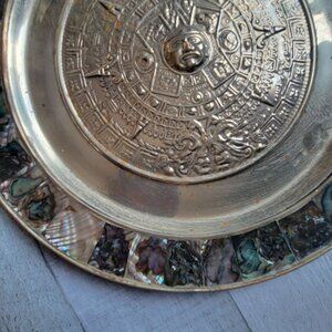 Mexican Aztec Mayan Calendar Silver Plate With Abalone Inlay