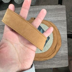 Stylish women's bag featuring a unique blue pattern on a tan background. Perfect for adding a touch of elegance to any outfit.