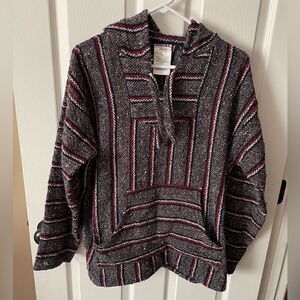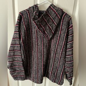Mexican Baja Hoodie Jacket Beach Outerwear Hippy Boho Gray Red large. Drug rug #unisex . Excellent condition from a smoke free / pet friendly home . I ship immediately 📦
