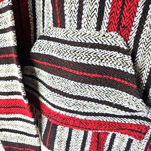 Mexican Baja Jacket Hoodie Poncho Pullover Sz XL Red, Black, and White Stripe