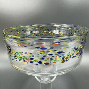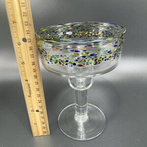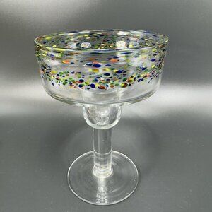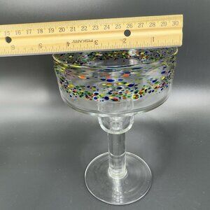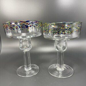 Mexican Blown Glass Margarita Glasses Cups Set 2 Clear With Multicolor Spots VTG