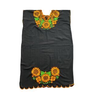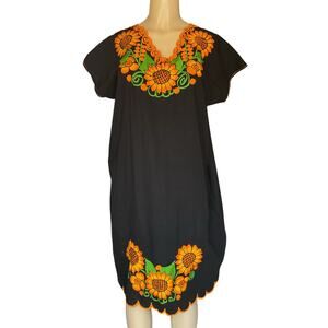 Mexican Dress black with Sunflowers & Belt Mexican Embroidered Folk Art