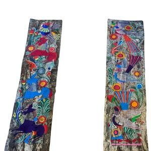 Two pices Vibrant textile art panels with intricate embroidery. Features a mix of bright colors and detailed designs. Perfect to decorate your home with this colorful handmade painting