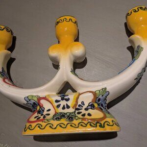 Authentic Beautiful Traditional Mexican Talavera Multi-Color 3 Arm Candelabra Candle Holder -