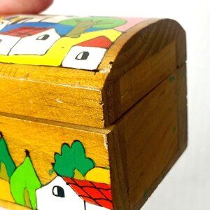 Mexican Guerrero Carved Wooden Trinket Box With Leather Hinges