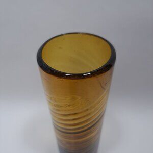 This unique hand-blown Mexican amber glass tumbler features an elegant swirl design. Measuring 7.50" tall, it's a stunning piece showcasing vintage craftsmanship and artisanal beauty.