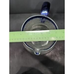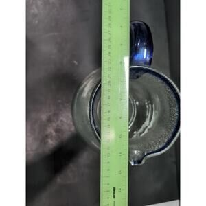 Mexican Hand Blown Glass Pitcher, Cobalt Blue Rim, 160 Oz Bubble Pitcher