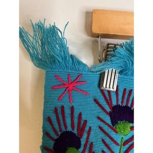 Mexican Hand Embroidered Tapestry Colorful Peacock Flowers Table Runner 64x17