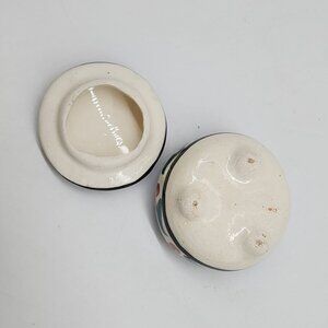 Mexican Hand Painted Ceramic Trinket Box With Floral & Rabbit 3" Diameter
