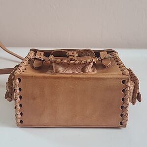 Mexican Hand Tooled Leather Bag Box Purse Mini Messenger Bag